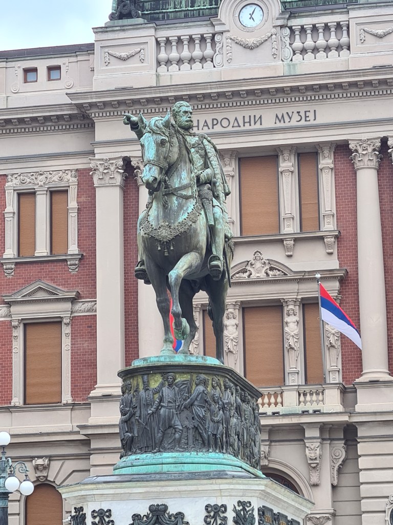 Cumhuriye Meydanı –Republic Square: Sırbistan’ın kurtuluşunu sağlayan Prens Mihailova’nın, 1882 tarihinde yapılmış olan heykeliyle süslenmiş olan bu meydan, kutlamaların, eğlence ve gösterilerin düzenlendiği hareketli bir yer. Çok büyük değil. Etrafında kafeler bulunmakta. Prens Mihailova Heykelinin üstünde Sırbistan’ın Osmanlılardan aldığı şehirlerin listesi bulunmaktadır. Heykelde Prens at üzerindedir ve bir parmağıni ileri doğru uzatmis haldedir. Burada Osmanlılara Sırbistan’dan İstanbul’a gitmelerini işaret ettiği söylenmektedir. Sırbistan Ulusal Müzesi binası da, Cumhuriyet Meydanında bulunmakta. Heykelin tam arkasındaki binadır. Cumhuriyet Meydanın hemen yan tarafından Knez Mihailova Caddesi başlar. Bu caddeyi gelişimizin üçüncü günümüzde gezmişiz gibi anlatmamıza rağmen ilk geldiğimiz gün de gezdik. Cumhuriyet meydani her yerin merkezinde diyebiliriz. İlla bir yerden bir yere giderken meydanın bir taraflarından geçmek durumundasınız. Meydanda ayrıca Belgrad Ulusal Tiyatrosu da bulunmaktadır. 19.yy inşa edilmiş bir yapıdır. Çeşitli konser ve etkinlikler düzenlenmekte. Cumhuriyet Meydanı her şeyin merkezinde, bir yerden diğerine geçerken mutlaka yanından kıyısından geçiyorsunuz. Belgrad’a geldiğinizde en sık göreceğiniz yer diyebiliriz.