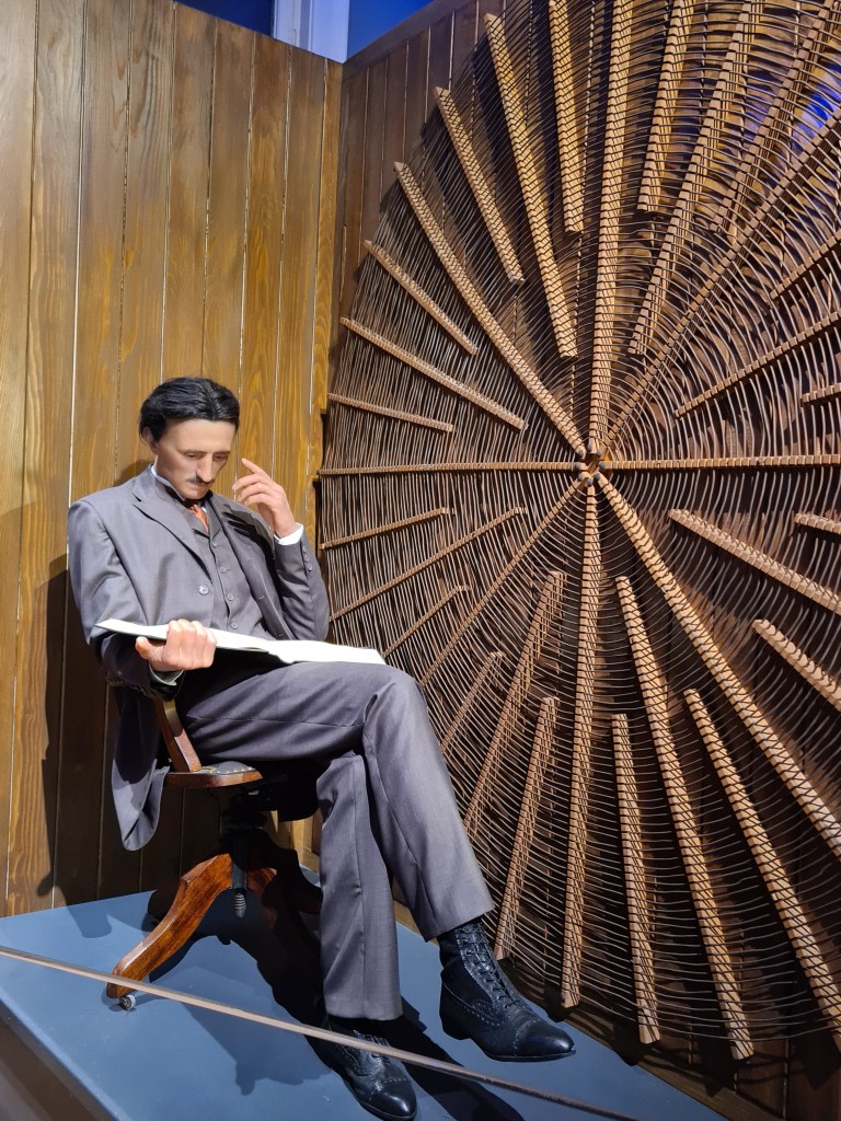 Nicola Tesla‘nın müzedeki balmumundan yapılmış mumyası. Kendisi 1.88 m uzunluğundaymış.