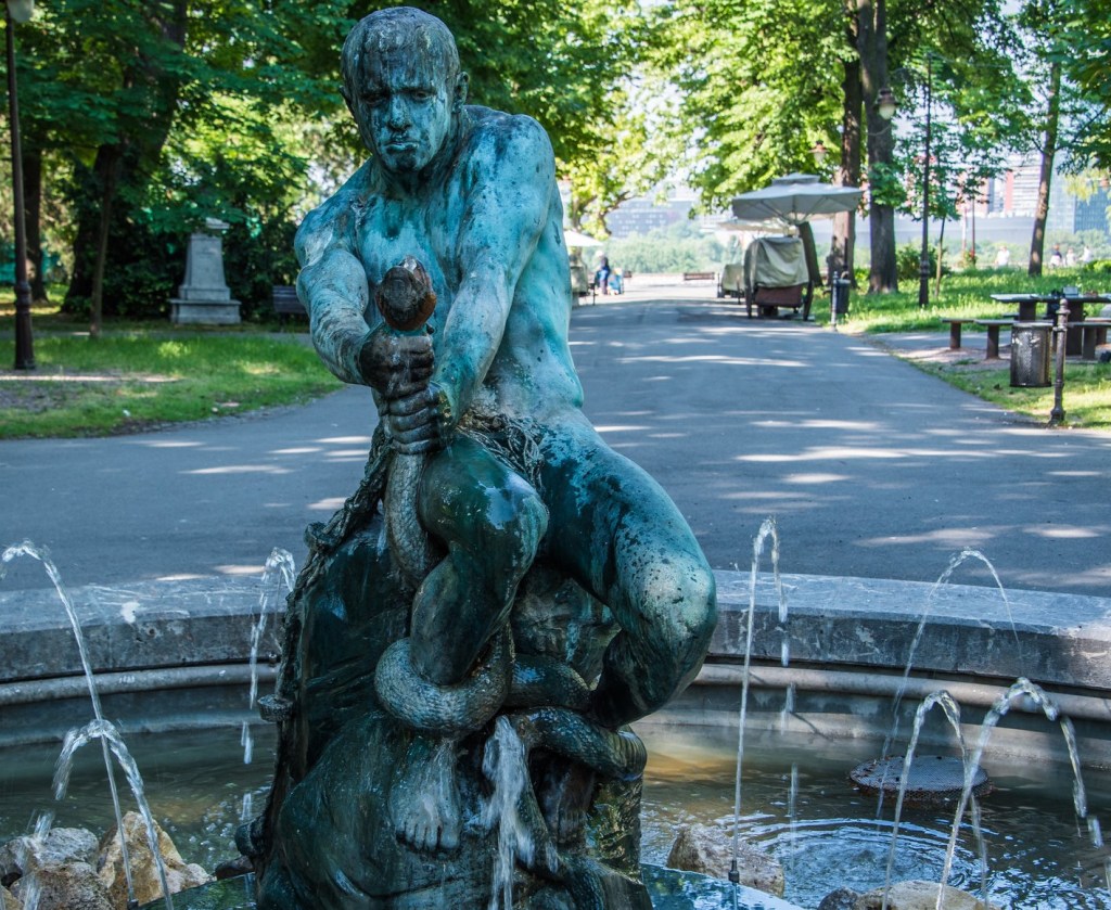 Balıkçı çeşmesi: Sırp heykeltraş Simeon Roksandic tarafından 1906 yılında Roma’da yapılmış ve sergilenmesi amacıyla Londra’ya gönderilmiş. Daha sonra heykel kaybolmuş. Bunun üzerine sanatçı heykelin aynısını tekrar yapmış. Parkta bulunan 2.kopya, ilk yapılan daha sonra bulunarak Zagrep’e getirilmiş ve Zagrep’te bir meydanda sergilenmekte. Bronzdan yapılmış heykel, balıkçı ile yılanın mücadelesi sahnelenmiş.