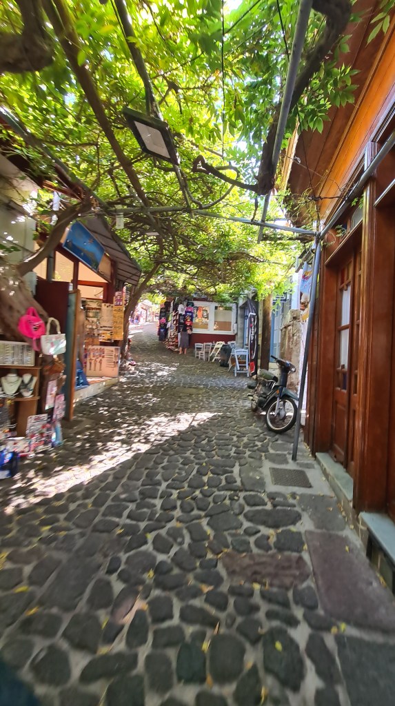 Plomari : Güneydeki tek yerleşim yeri ve oldukça güzel. Plaja gitmeden önce şehir merkezi ve sokaklarında yürüyüş yaptık. Sahilde birçok restoran ve kafe var. Zaten ada genelde mekan konusunda zengin.