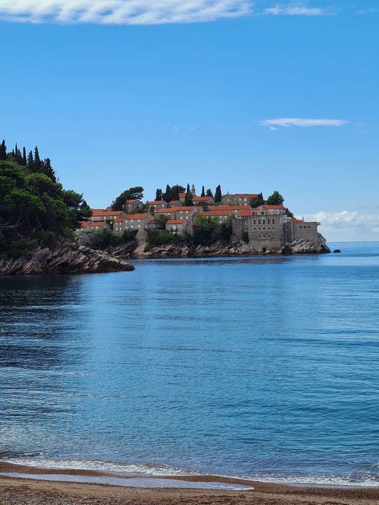 Sveti Stefan : Bugün önce karayolu ile Sveti Stefan adasına gitmek, öğleden sonra da yaklaşık 1.5 saat süren tekne turu alarak hem Hawaii adasına gitmek hem de Sveti Stefan adasını bu kez de tekne ile denizden görmek istedik. Turlar Hawaii adasında 30 dakika süren küçük bir mola vermekte.